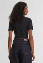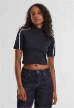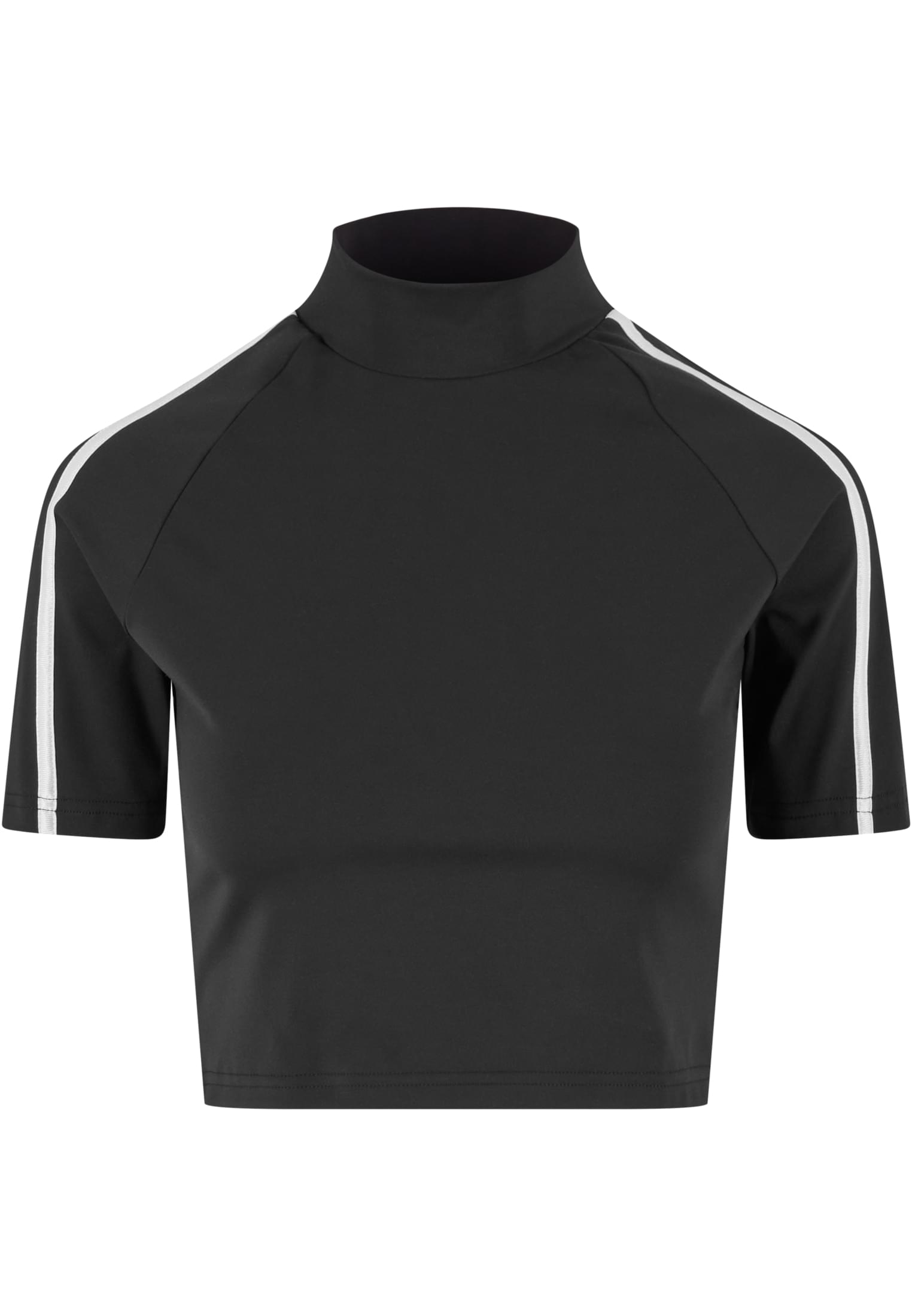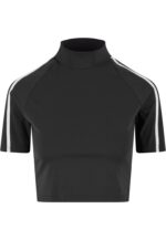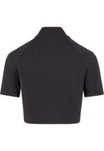 T-Shirt zum Alltag mit kurzer, körpernaher Länge und einem markanten Stehkragen, ideal als lässige Alltagslage oder unter einer Jacke getragen. Das Stück besteht aus einem stretchigen Polyamid-Elastan-Jersey, der sich glatt anfühlt und Bewegungsfreiheit bietet, während die reguläre Passform einen ausgewogenen Sitz garantiert. Die eingesetzten kurzen Ärmel und der knappe Saum betonen die cropped-Ästhetik, ohne strikt eng zu wirken, und sorgen für eine moderne Silhouette. Saubere Nähte und ein glatter Abschluss am Hals und Saum geben dem Design Struktur und Tragekomfort, sodass es vielseitig kombinierbar bleibt und im Alltag flexibel einsetzbar ist.