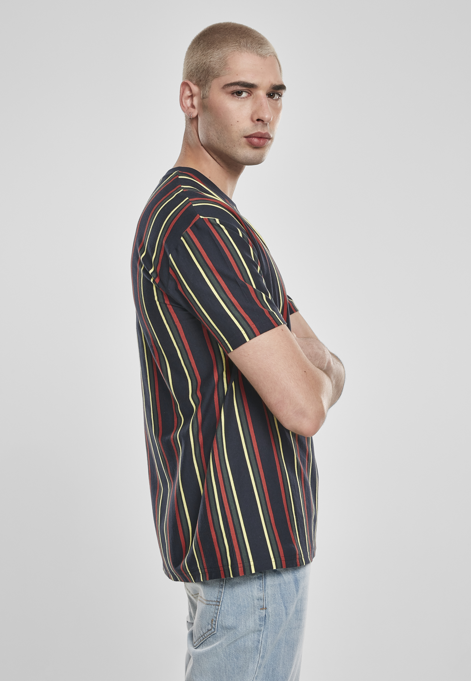 Ein auffälliges Tee, dass mit seinem Retro-Streifenmuster aus der Menge hervorsticht und für Aufmerksamkeit sorgt. Ob auf Jeans oder dunklen Hosen, das Shirt verlangt selbstbewusstes Auftreten, um seinen ungewöhnlichen Stil voll zu entfalten. Dann allerdings kommt kein Blick um das Tee herum und deine Zeit ist gekommen, um diese Blicke ganz zu deinem Vorteil zu nutzen. Mach was draus!